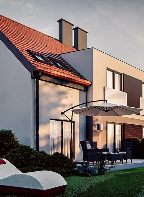 Dach pokryty trwałą i estetyczną dachówką najwyższej jakości renomowanej firmy.